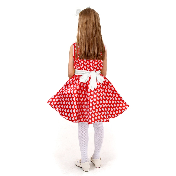 Карнавальный костюм «Стиляги» платье красное с белыми сердцами, повязка р-р 30 рост 110-116 см