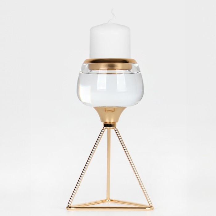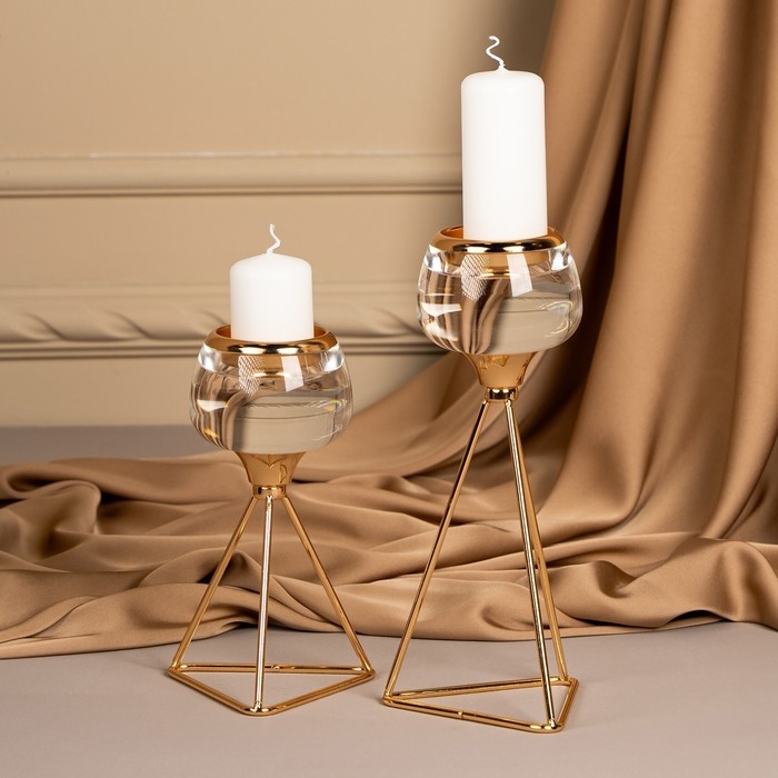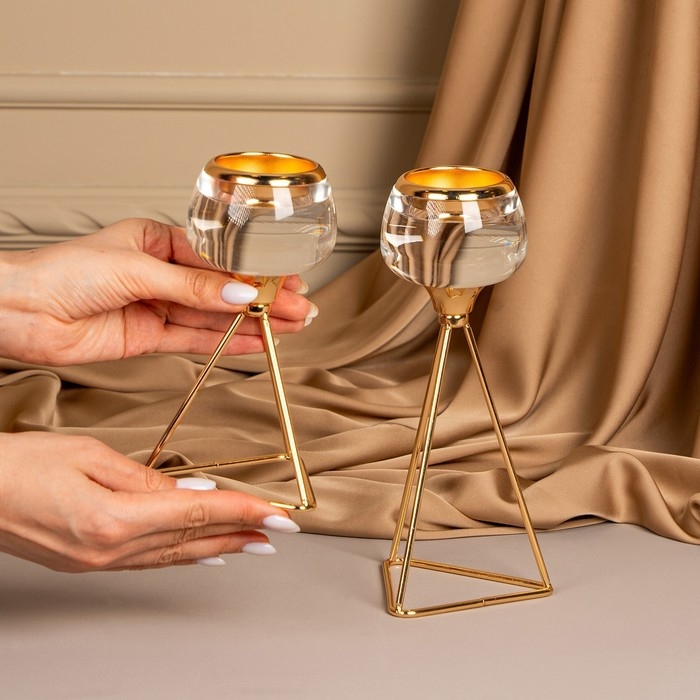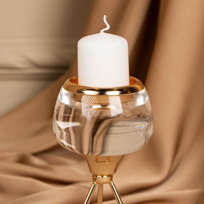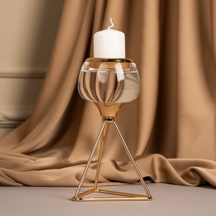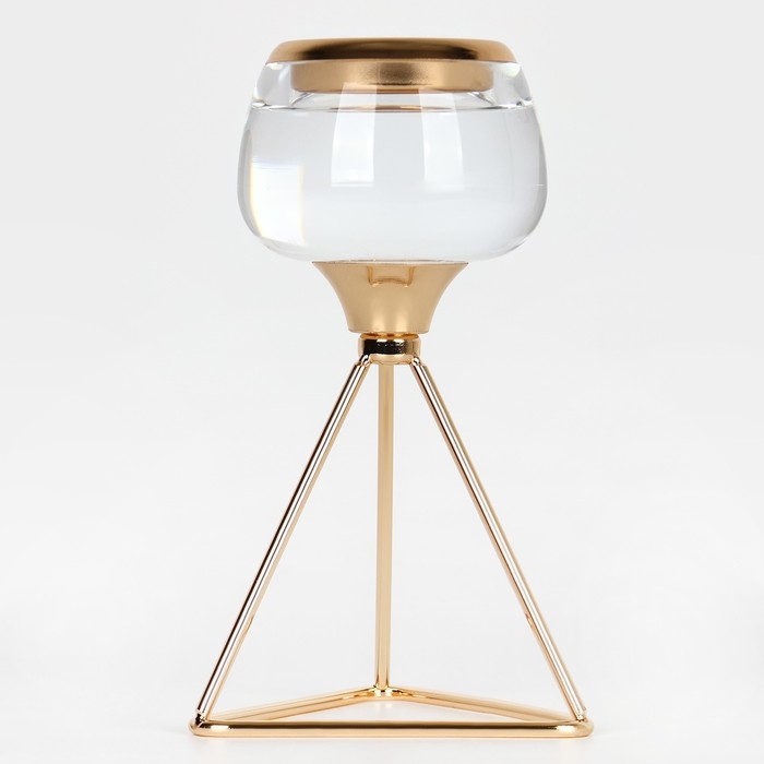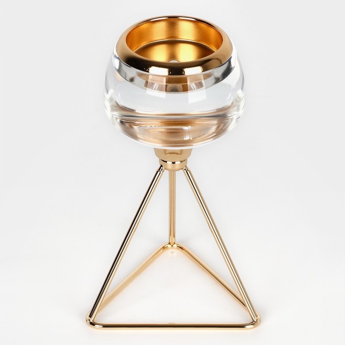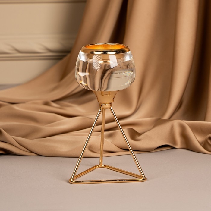 Подсвечник металл, стекло на 1 свечу «Изысканность» цвет золото 9.5 х 9.5 х 17 см
