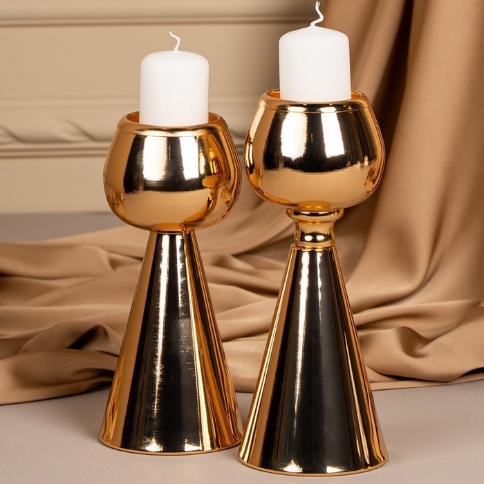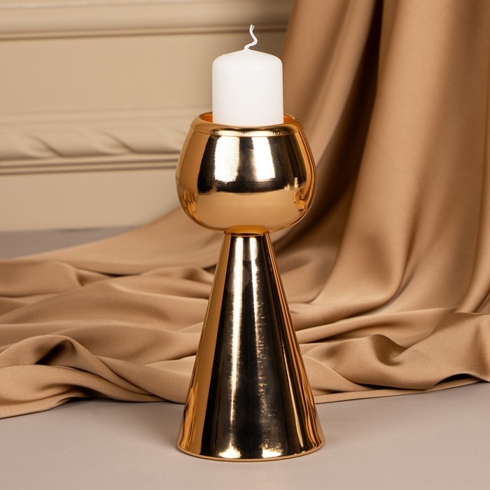 Подсвечник металл на 1 свечу «Гиацинт», цвет золото 8 х 8 х 19 см