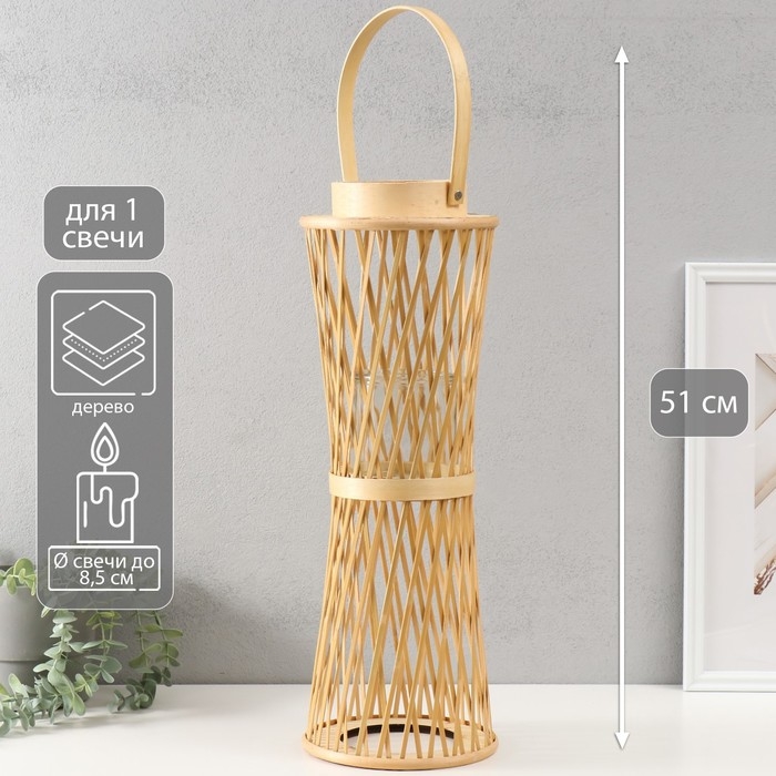 Подсвечник дерево на 1 свечу "Лоза крест-накрест" натуральный 12х18х51 см