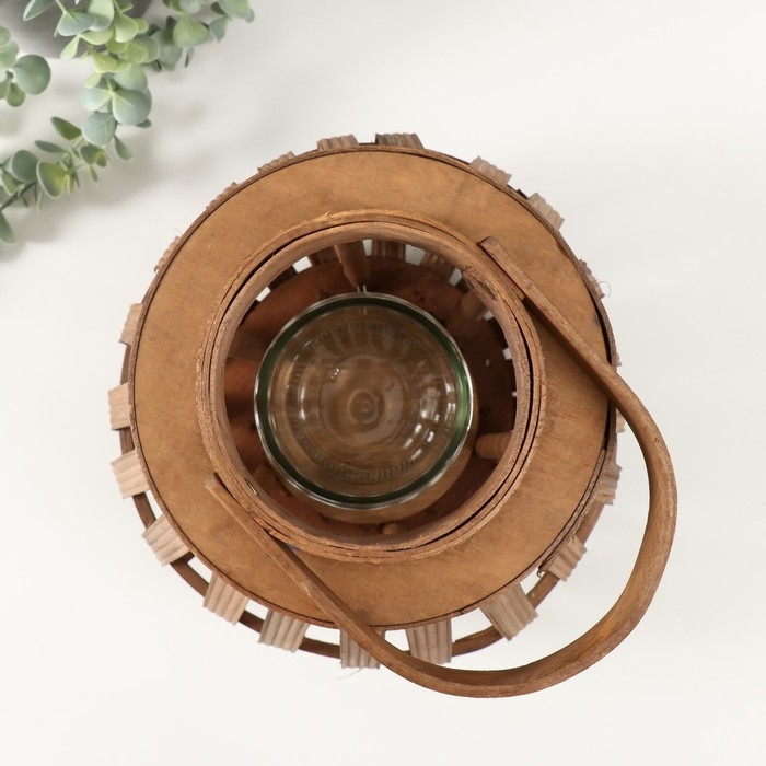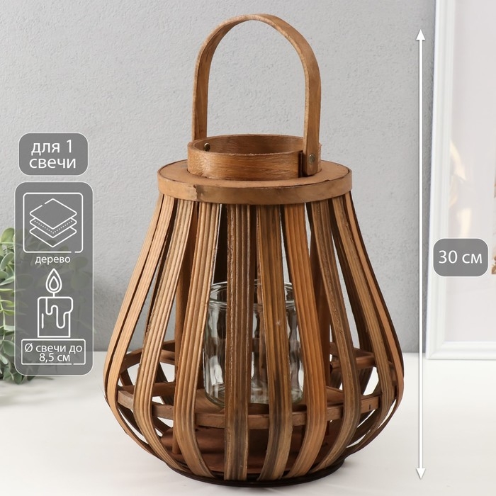 Подсвечник дерево на 1 свечу "Эко-фонарь" коричневый 12х27х30 см