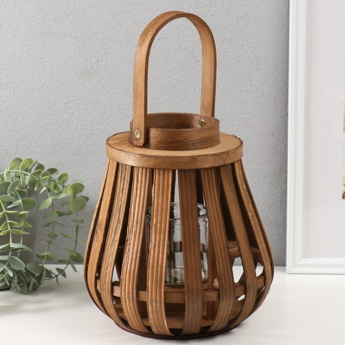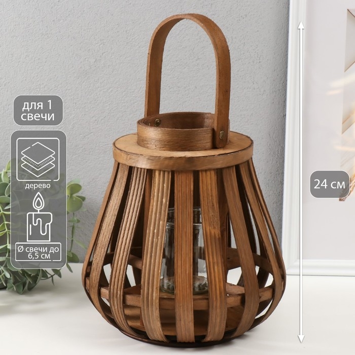 Подсвечник дерево на 1 свечу "Эко-фонарь" коричневый 10х22х24 см