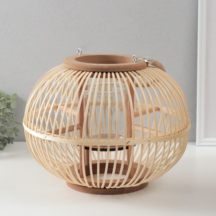 Подсвечник дерево на 1 свечу "Шар из лозы" натуральный 18х36х28 см