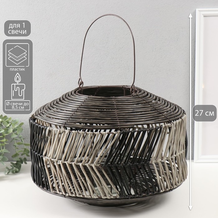Подсвечник пластик на 1 свечу "Лист из лозы" чёрно-белый 15х38х27 см