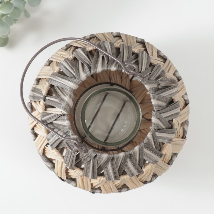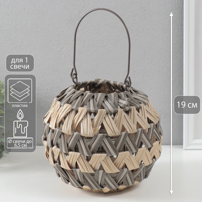 Подсвечник пластик на 1 свечу "Зигзаг полосками" серо-бежевый 10х21х19 см