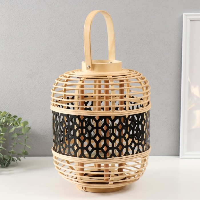 Подсвечник ротанг, металл "Фонарик. Соты" 32,5х25х25 см