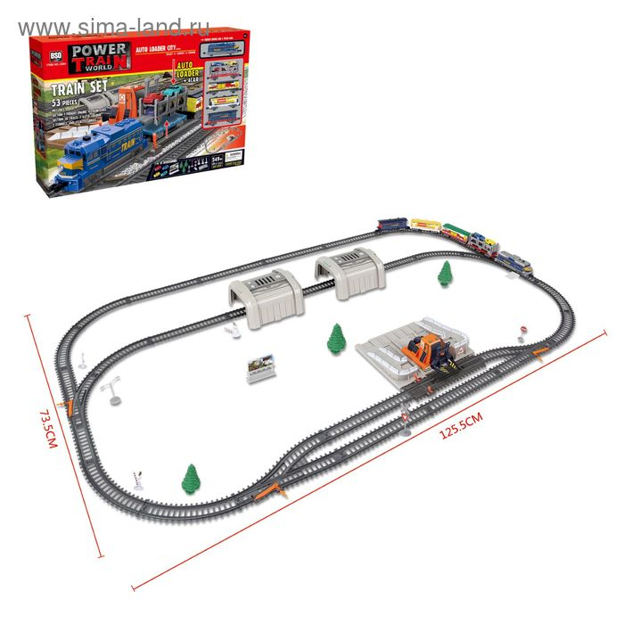 Железная дорога «Локомотив», работает от батареек, длина пути 549 см., погрузочная платформа