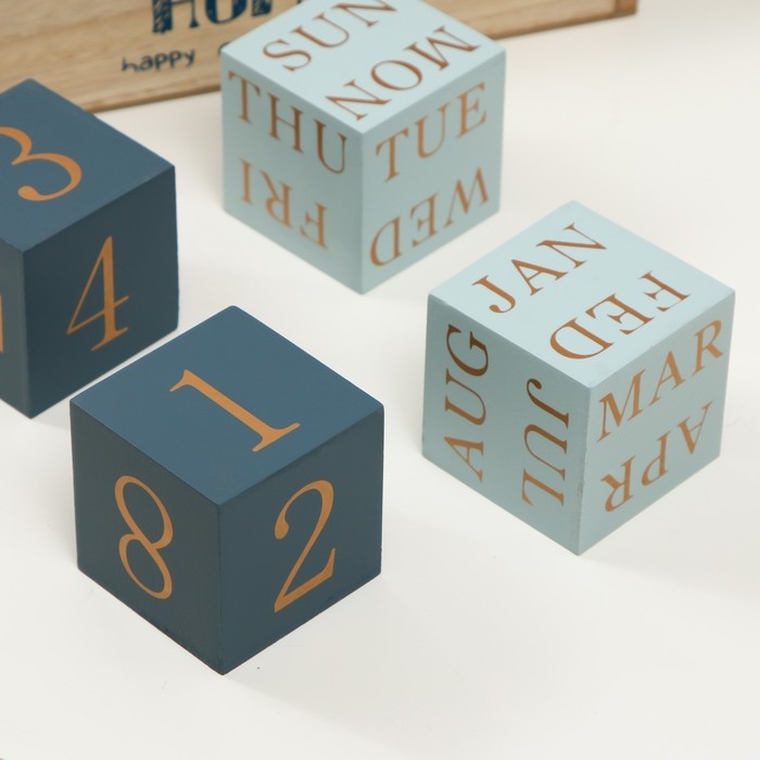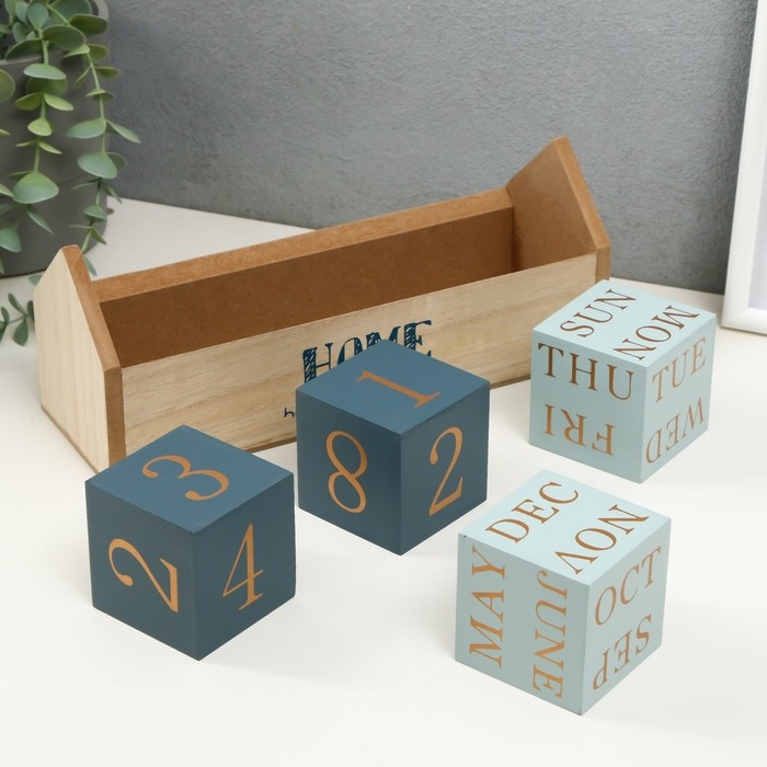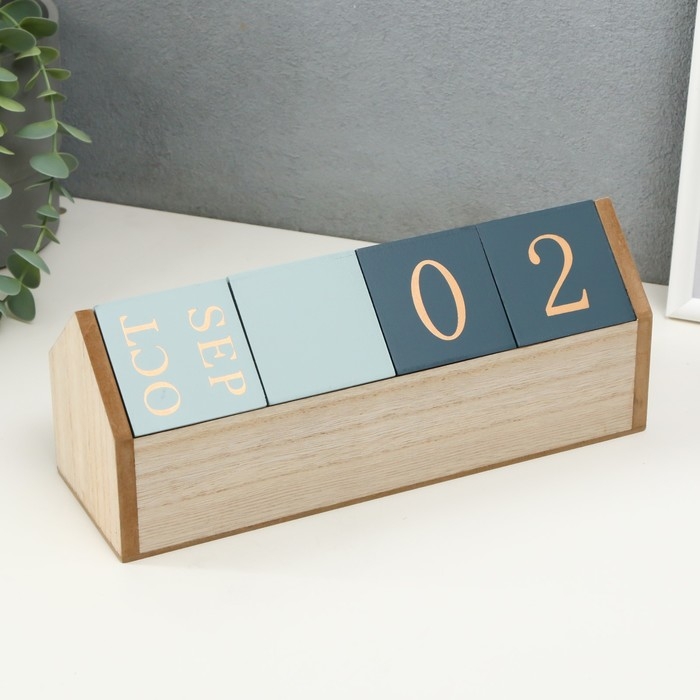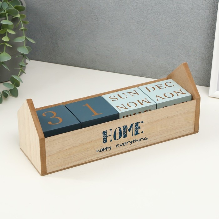 Сувенир дерево настольный календарь "Домашний календарь" голубой 26х8,4х10,3 см
