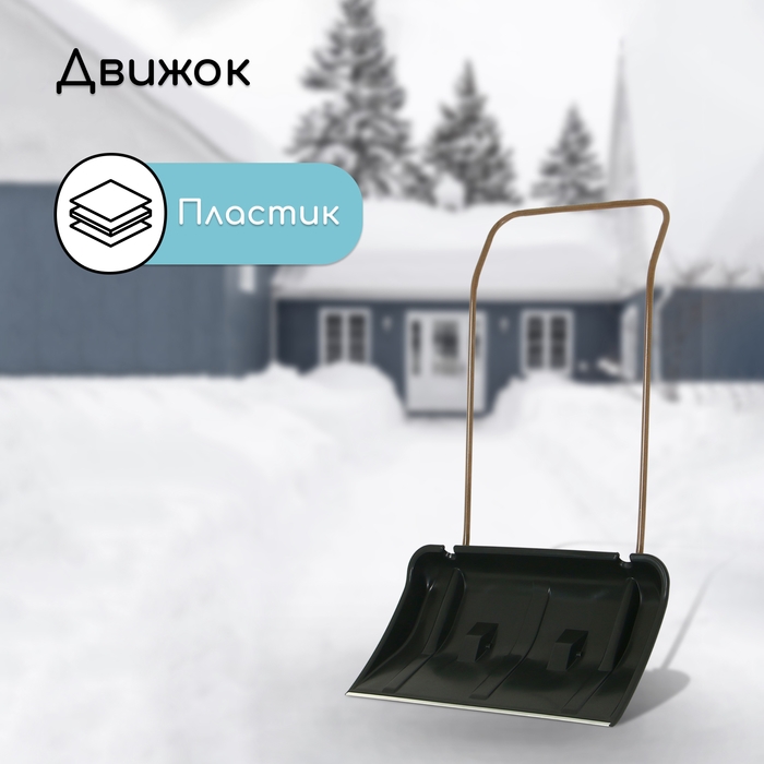 Движок пластиковый, на колёсах, размер ковша 43 × 75 см, металлическая планка, с быстросъёмной ручкой, чёрный