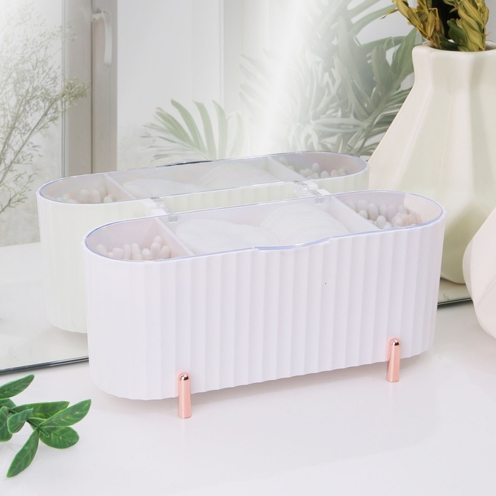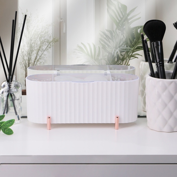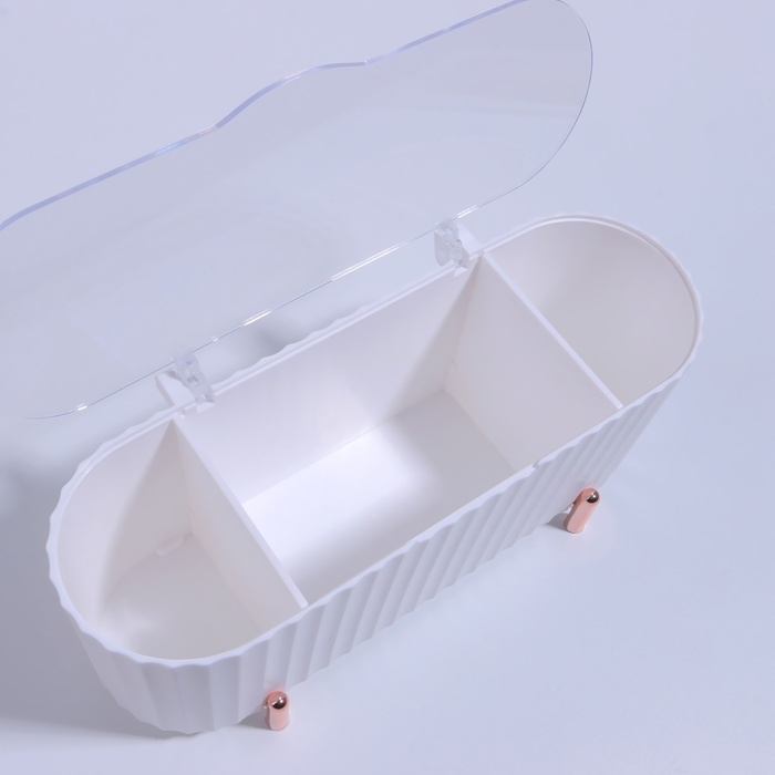 Органайзер для хранения, с крышкой, 3 секции, 21 × 8 × 9 см, цвет белый/розовое-золото