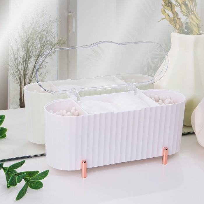 Органайзер для ватных палочек и дисков, с крышкой, 3 секции, 14 × 14 × 13 см, цвет прозрачный