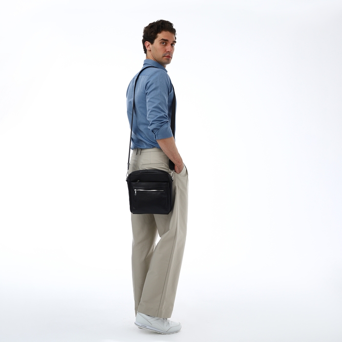 Сумка мужская через плечо TEXTURA, искусственная кожа, цвет чёрный