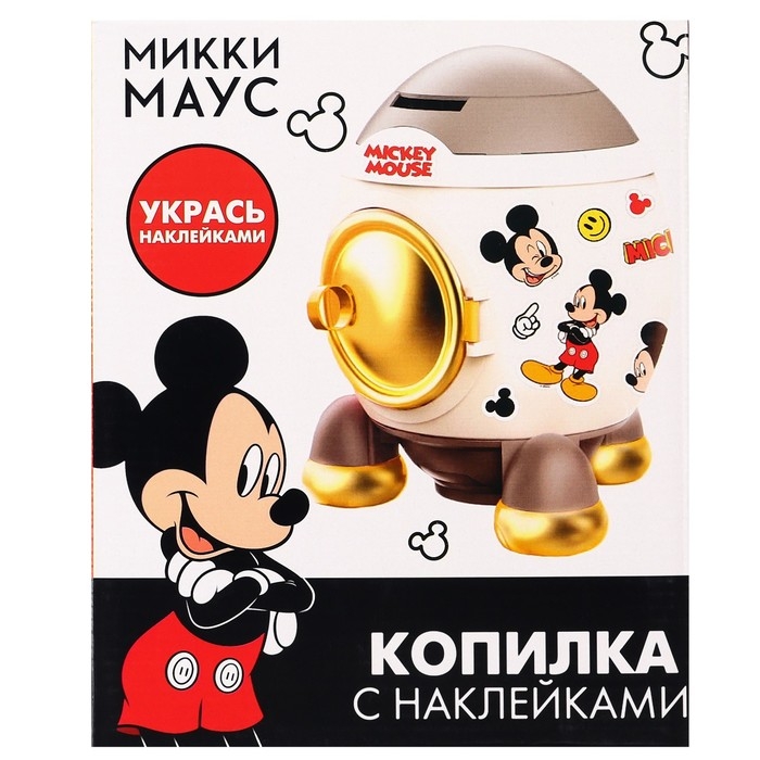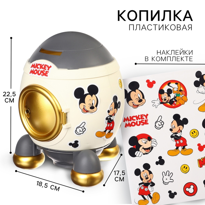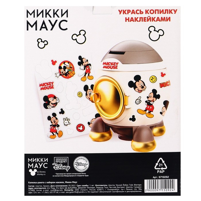 Копилка ракета с набором наклеек, 22,5 см х 18,5 см х 17,5 см "Мышонок", Микки Маус