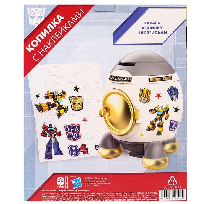 Копилка ракета с набором наклеек, 22,5 см х 18,5 см х 17,5 см "Бамблби", Трансформеры
