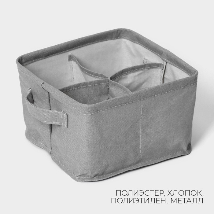 Органайзер для хранения белья LaDо́m, 4 ячейки, 20,5×20,5×12 см, цвет серый