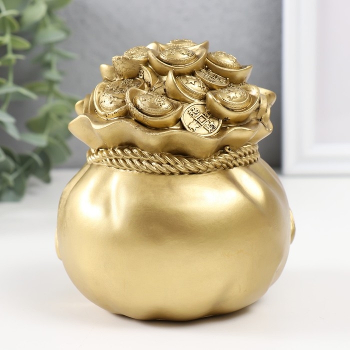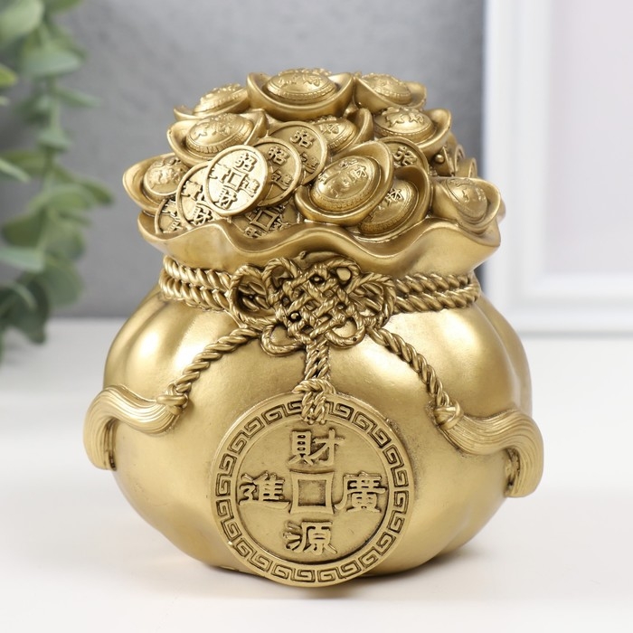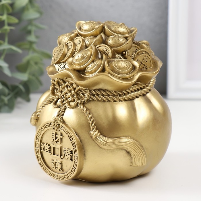 Нэцкэ полистоун под бронзу "Мешок с большой китайской монетой" 10,5х10.5х12 см
