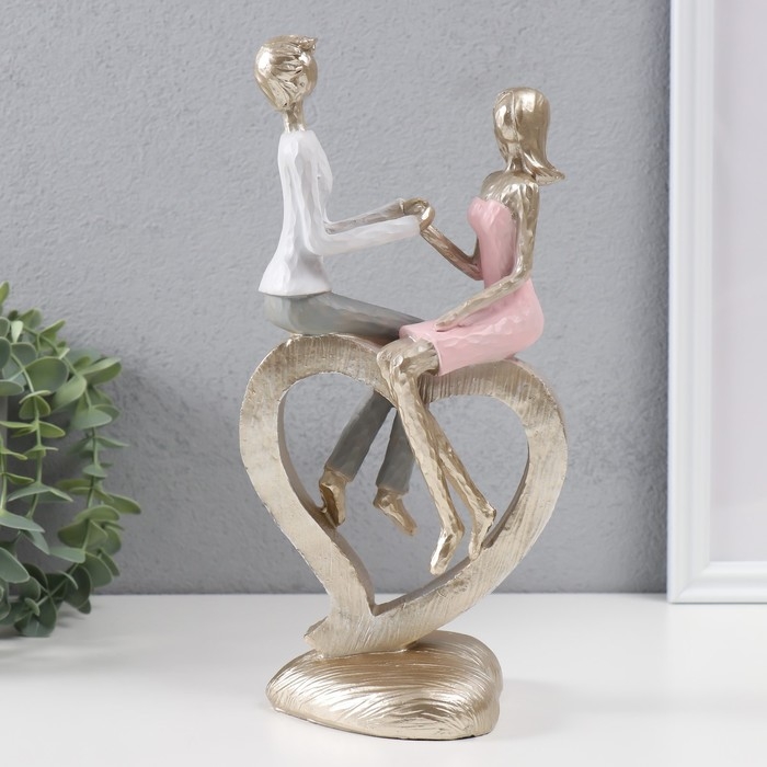 Сувенир полистоун "Влюблённая пара сидит на сердце" 13х10,5х27 см