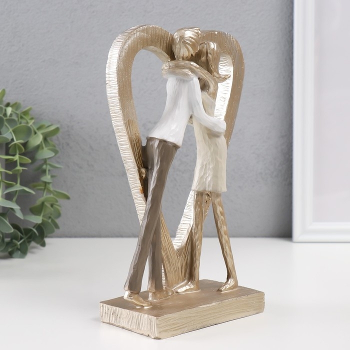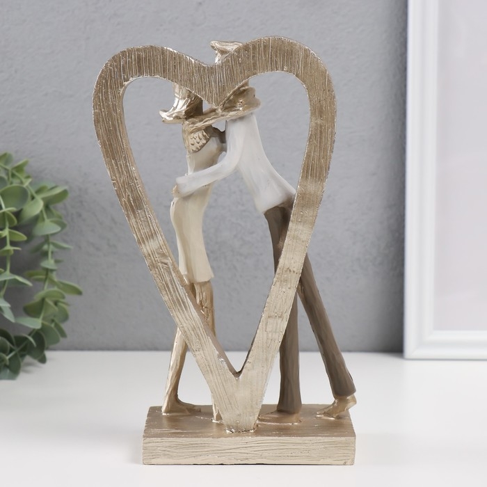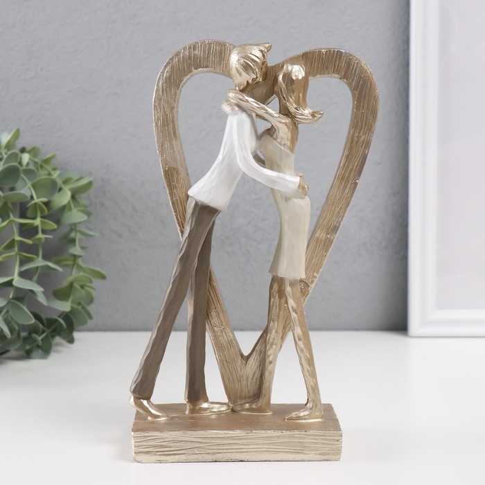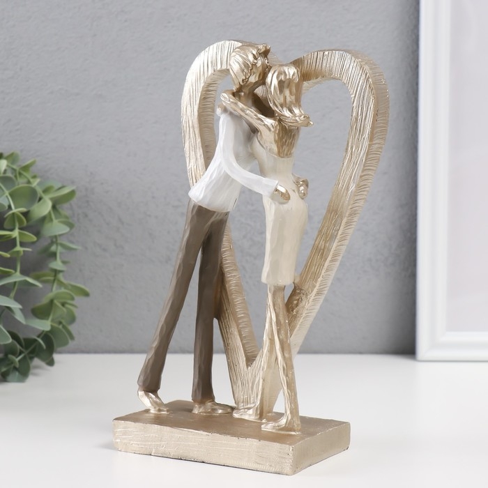 Сувенир полистоун "Поцелуй влюблённых у большого золотого сердца" 13,5х7х22 см