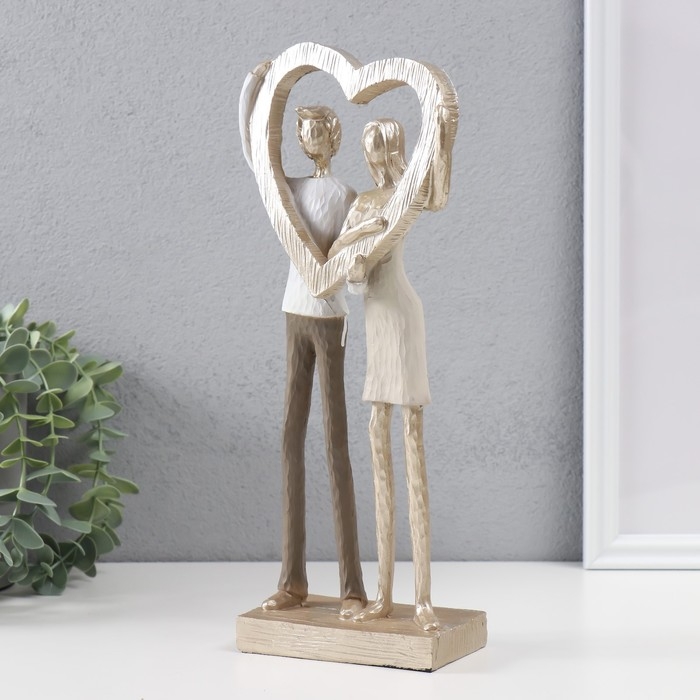 Сувенир полистоун "Влюблённые с большим золотым сердцем" 12,5х8х29,5 см