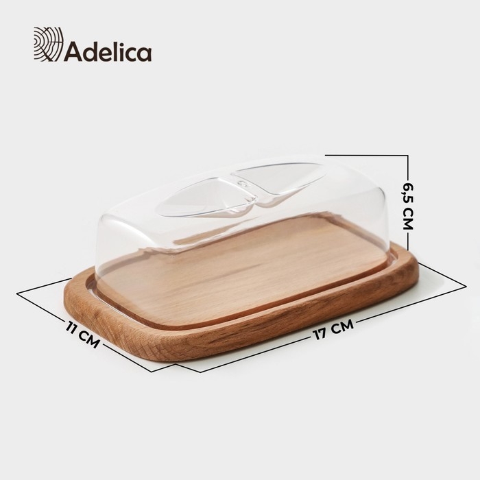 Маслёнка - сырница с крышкой Adelica, 17×11×6,5 см, бук
