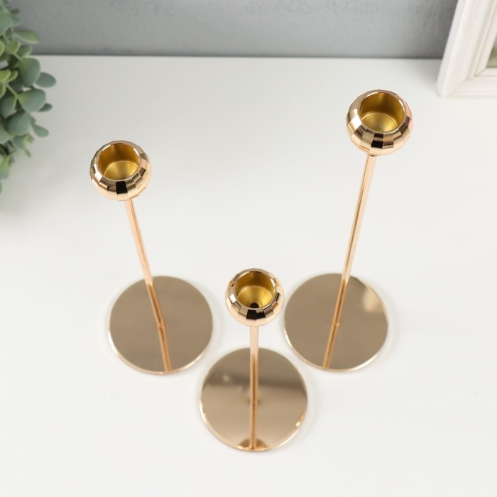 Подсвечник металл "Шар с гранями" d=2 см набор 3 шт золото 22 см, 27 см, 32 см
