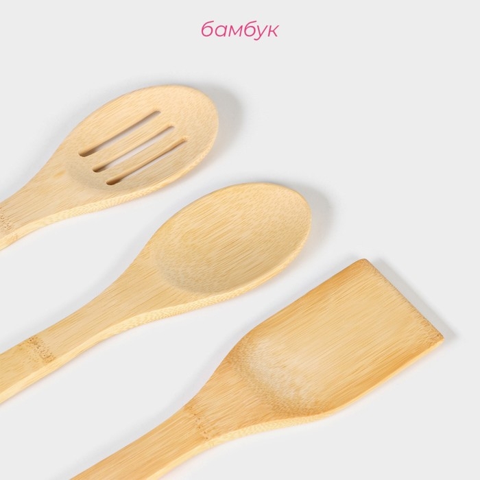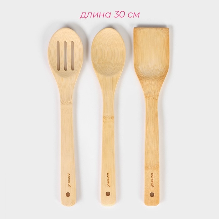 Набор кухонных принадлежностей Доляна «Бамбуковый лес», 3 предмета на подставке: 1 лопатка, 2 ложки