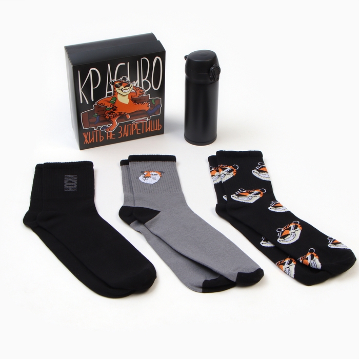 Подарочный набор термос и носки 3 пары KAFTAN "Красиво", р. 41-44 (27-29 см)