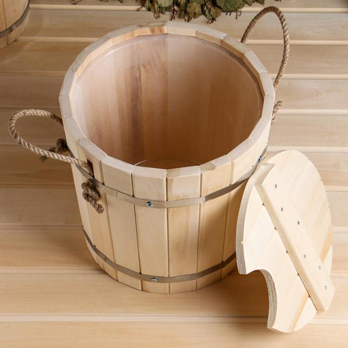 Запарник-ведро из липы, 13 л, пластиковая вставка, с крышкой, "Добропаровъ"
