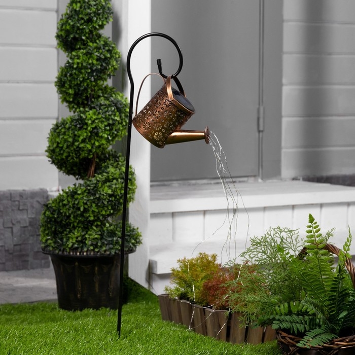 Садовый светильник на солнечной батарее «Лейка», 21 × 15 × 9.5 см, 37 LED, свечение тёплое белое
