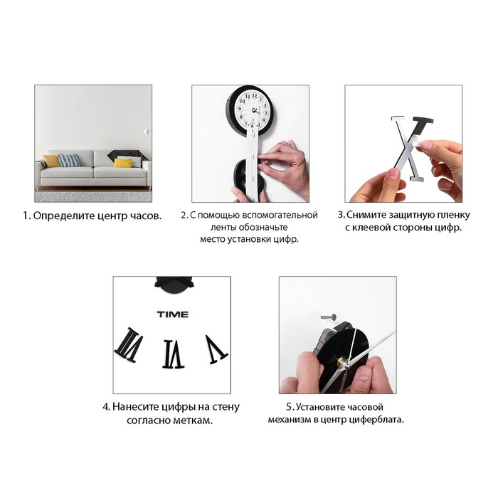 Часы настенные интерьерные большие, 3d "Лорье", бесшумные, наклейка, d-120 см