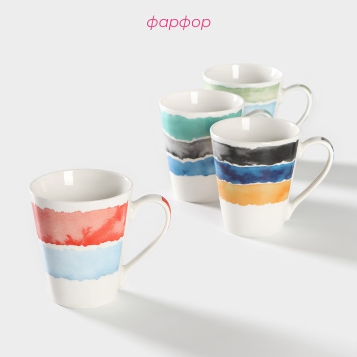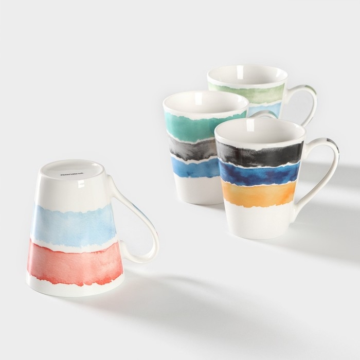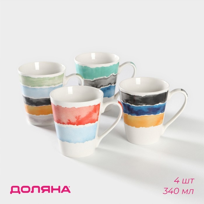 Набор кружек фарфоровых Доляна «Цветной дым», 4 предмета: 340 мл
