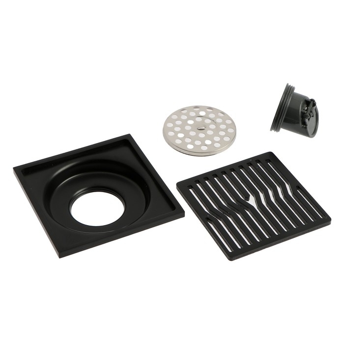 Трап ZEIN, 100х100 мм, вертикальный, d=32 мм, нержавеющая сталь, черный