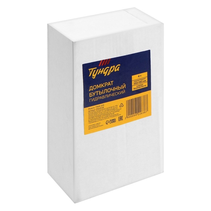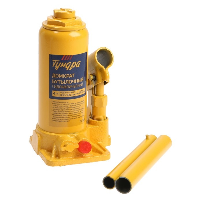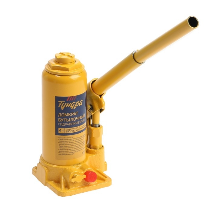 Домкрат бутылочный гидравлический ТУНДРА, второй клапан, подъем/подхват 350/180 мм, 4 т