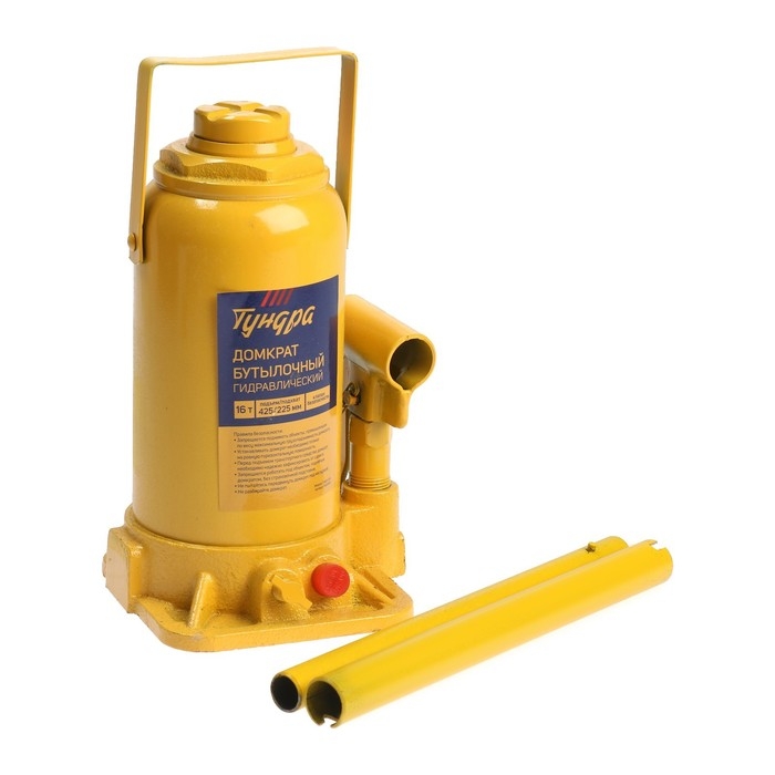 Домкрат бутылочный гидравлический ТУНДРА, второй клапан, подъем/подхват 425/225 мм, 16 т