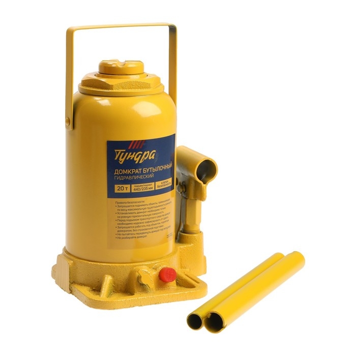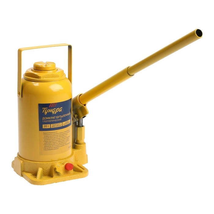 Домкрат бутылочный гидравлический ТУНДРА, второй клапан, подъем/подхват 440/235 мм, 20 т