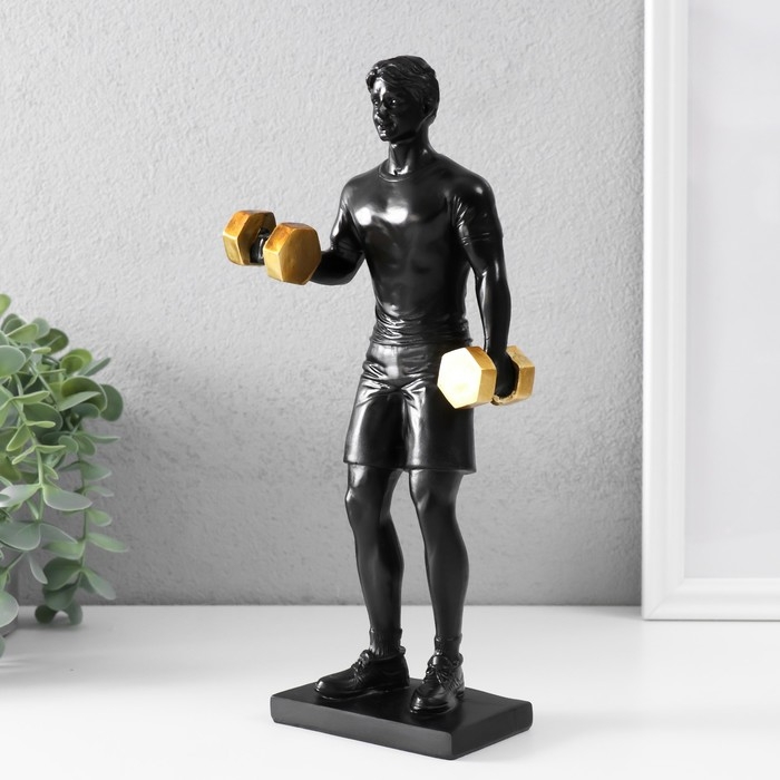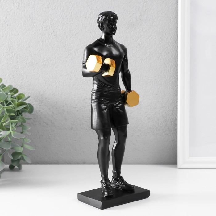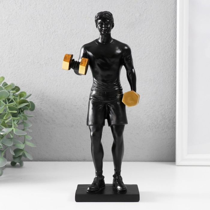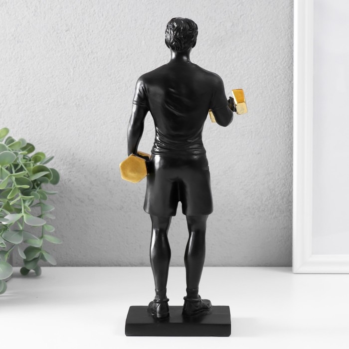 Сувенир полистоун "Спортсмен с гантелями" чёрный с золотом 11х7х26 см