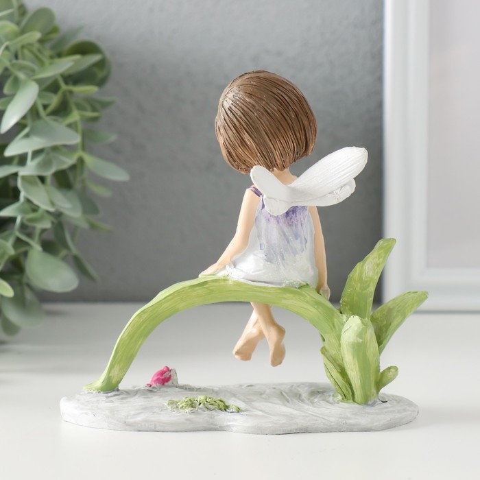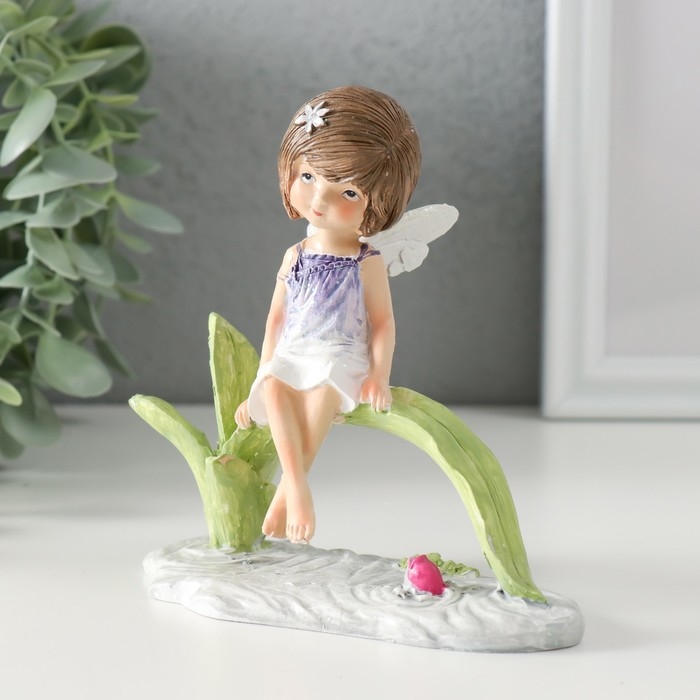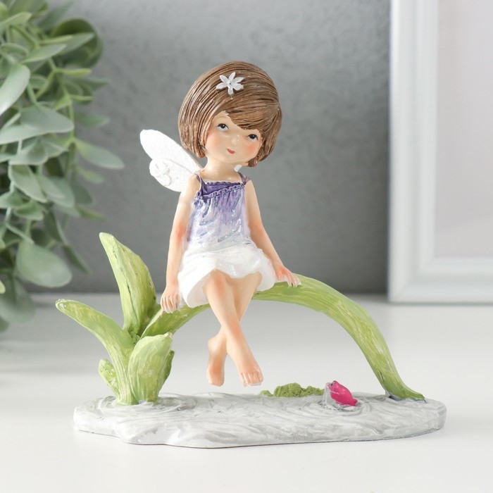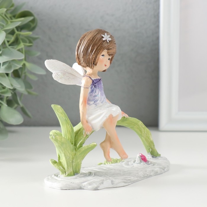 Сувенир полистоун "Малышка в сиреневом платье с крыльями, сидит у пруда" 12,5х8х12 см
