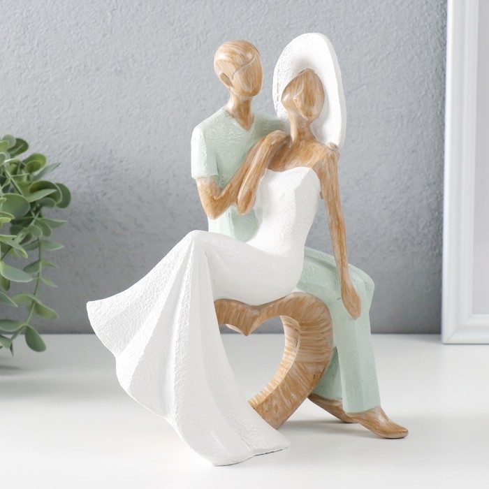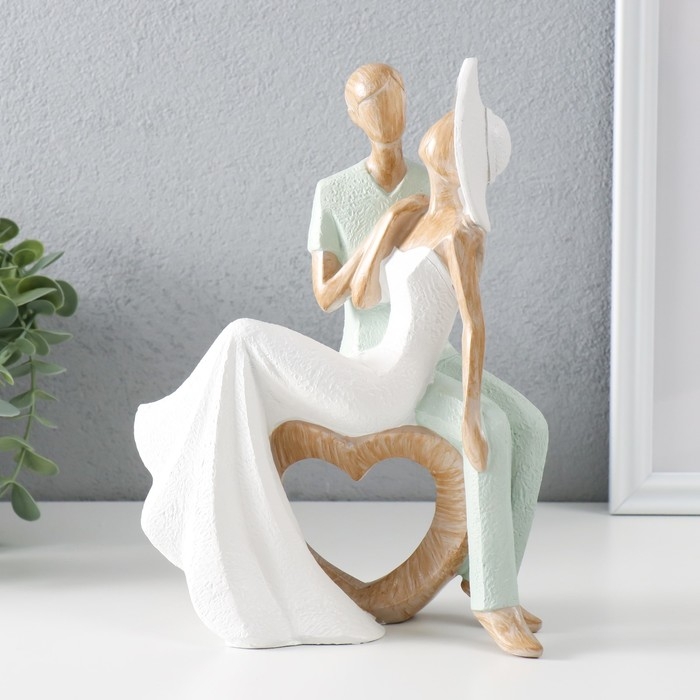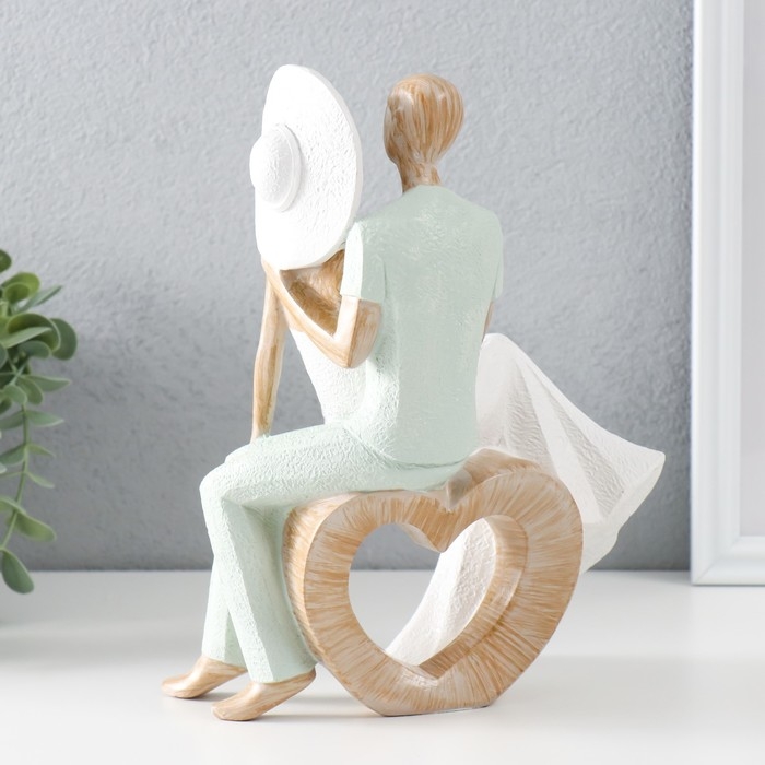Сувенир полистоун "Ретро. Влюблённые сидят на сердце" бело-зелёный 18х11х23,5 см
