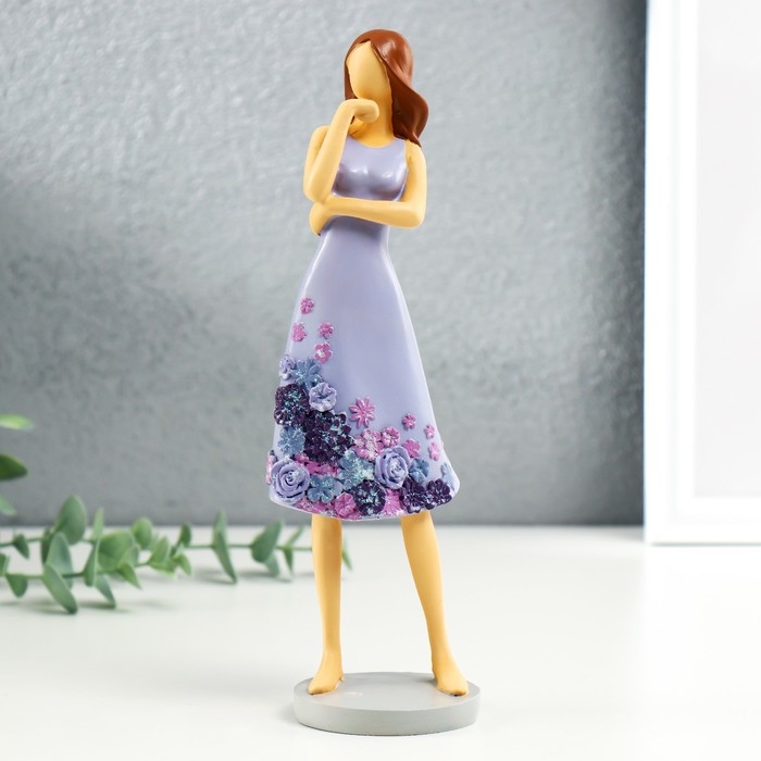 Сувенир полистоун "Девушка в сиреневом платье с цветами" 7,5х7х23,5 см