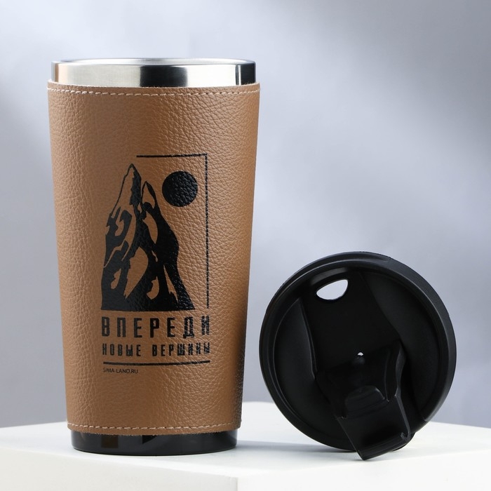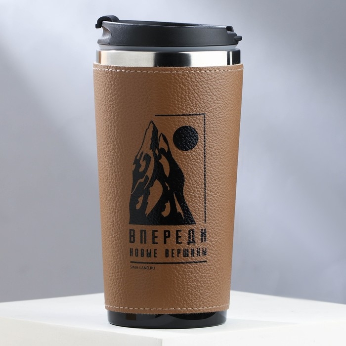 Термостакан в кожзаме «Впереди новые вершины», 450 мл