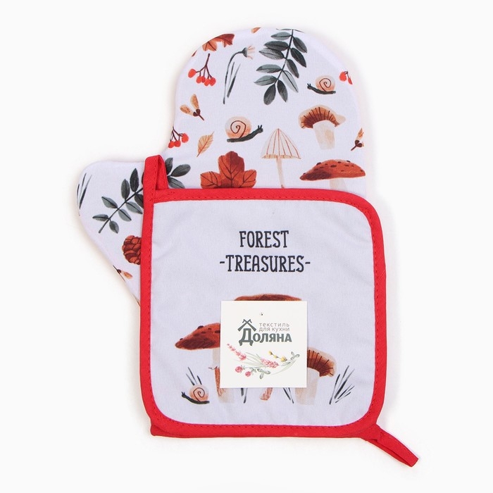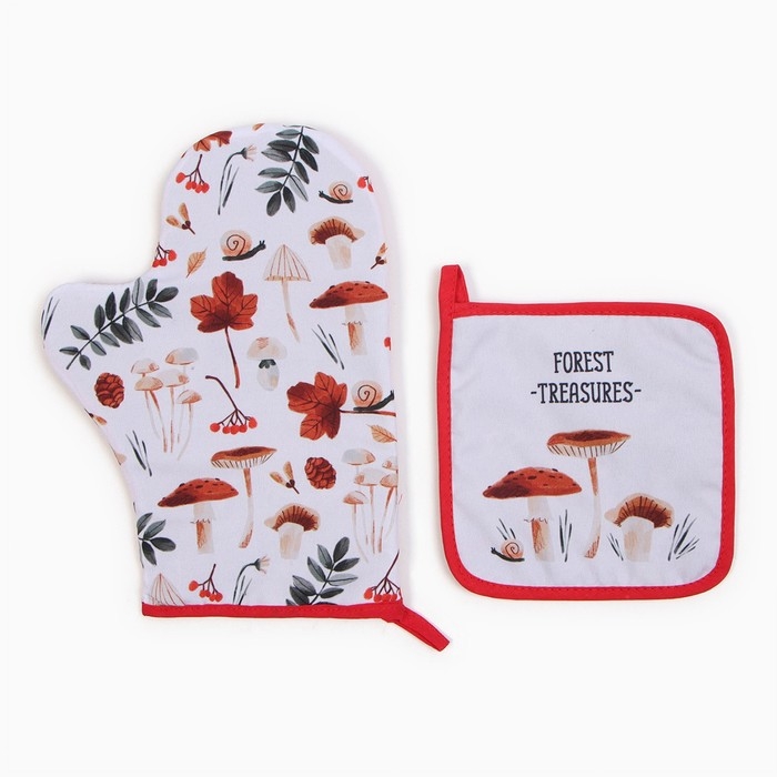 Набор кух. Доляна "Грибы": варежка 20х28 см, прихватка 17х17 см, 35% хл, 65% пэ