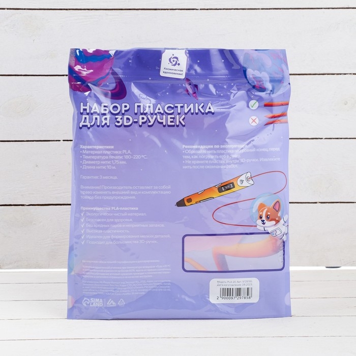 Пластик Luazon PLA-20, для 3D ручки, 20 цветов по 10 метров