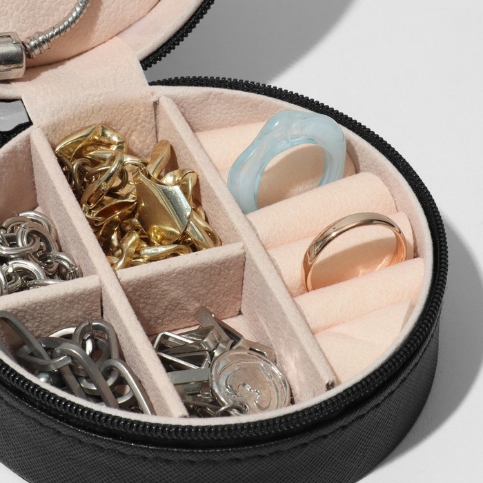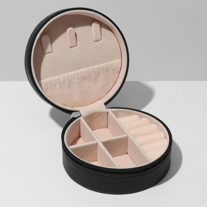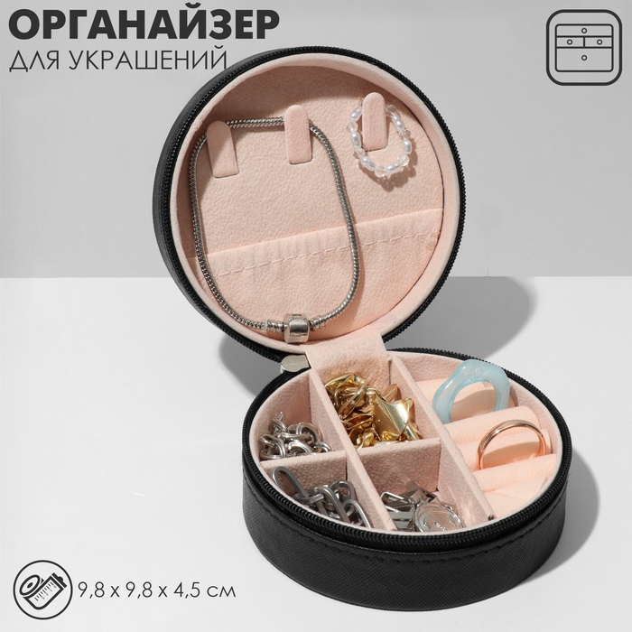 Органайзер для хранения украшений «Шкатулка портативная круг», 9,8×9,8×4,5 см, цвет чёрный