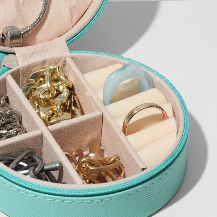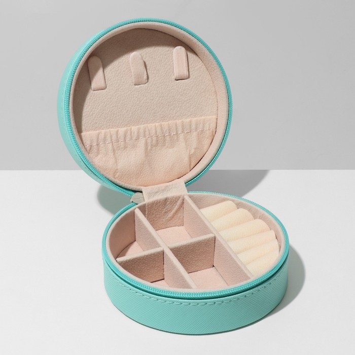 Органайзер для хранения украшений «Шкатулка портативная круг», 9,8×9,8×4,5 см, цвет голубой