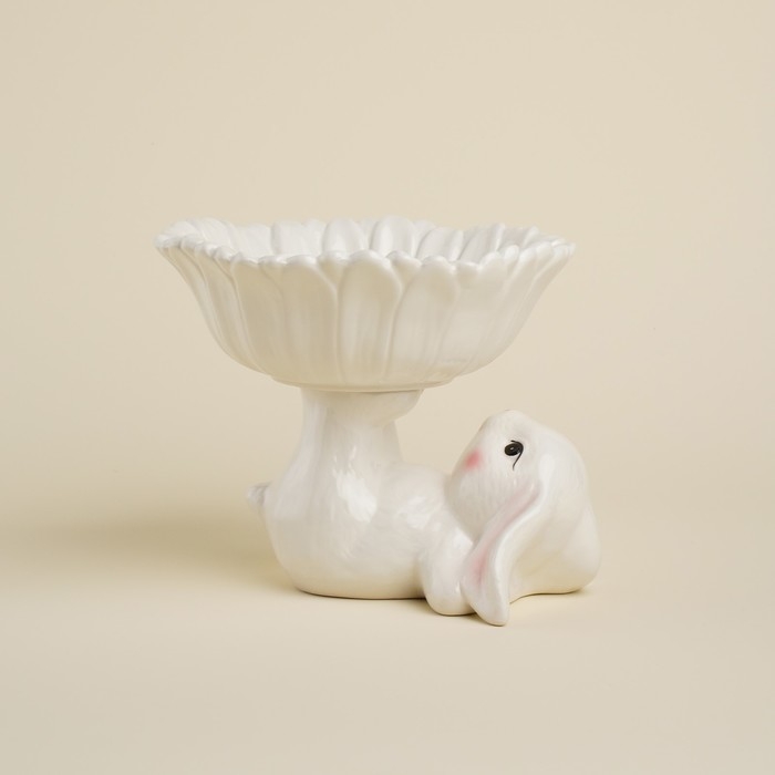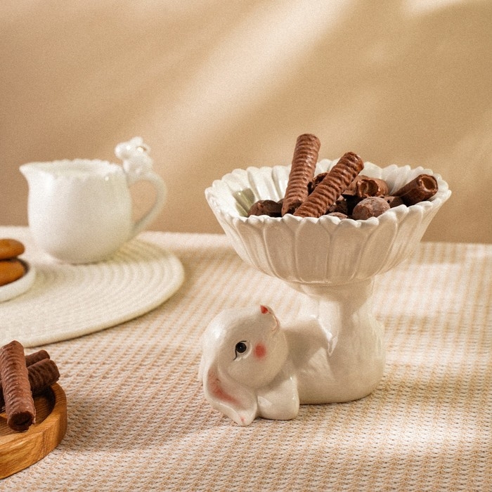 Конфетница керамическая SL Home «Лесные кролики», 19×17,5×15 см, цвет белый
