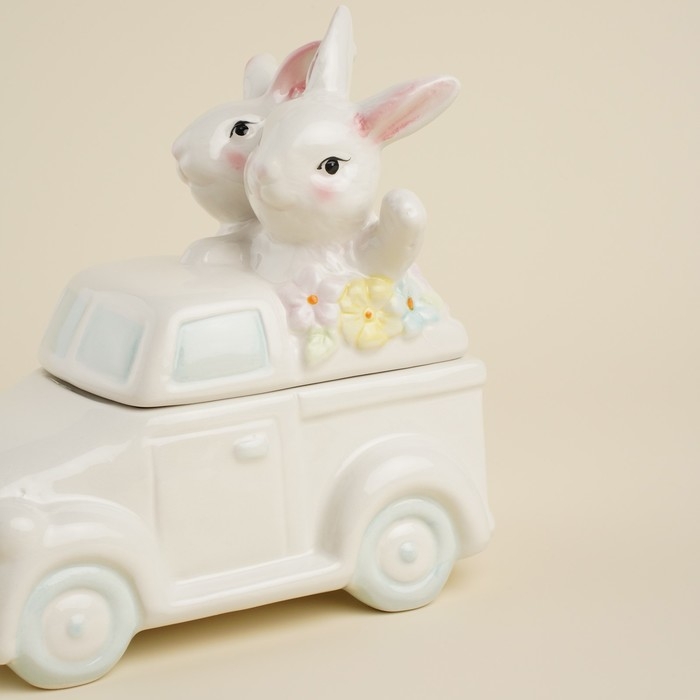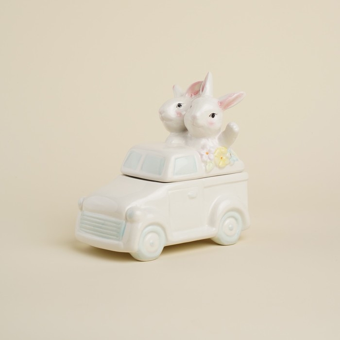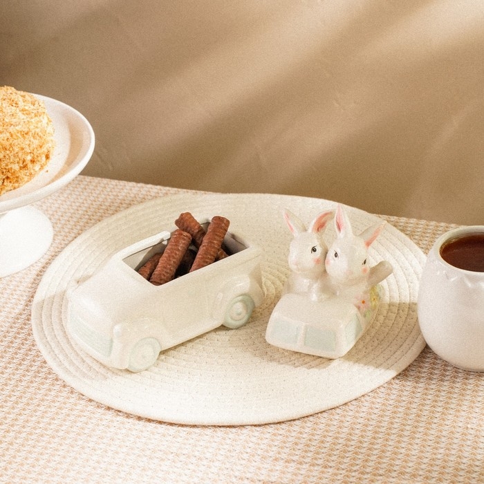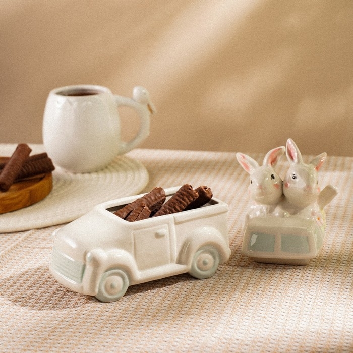 Конфетница керамическая SL Home «Лесные кролики», 17×10,5×17 см, цвет белый