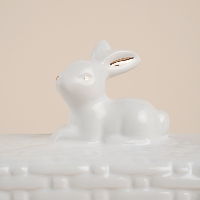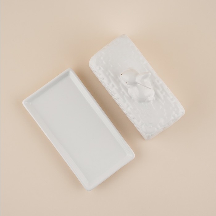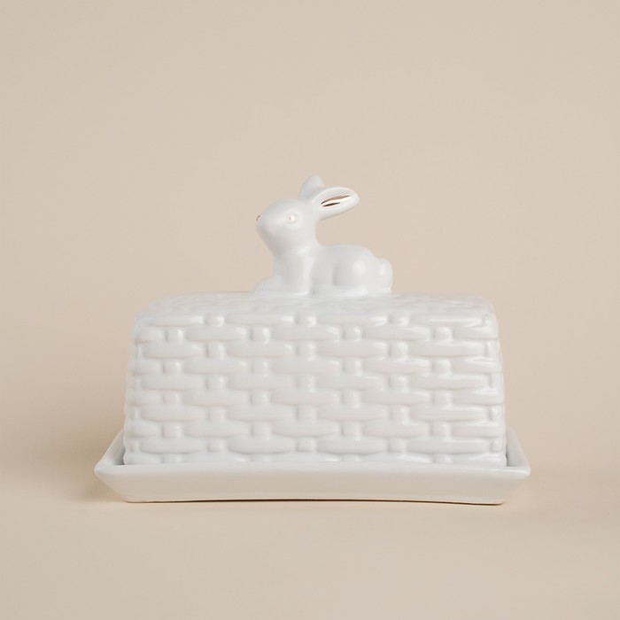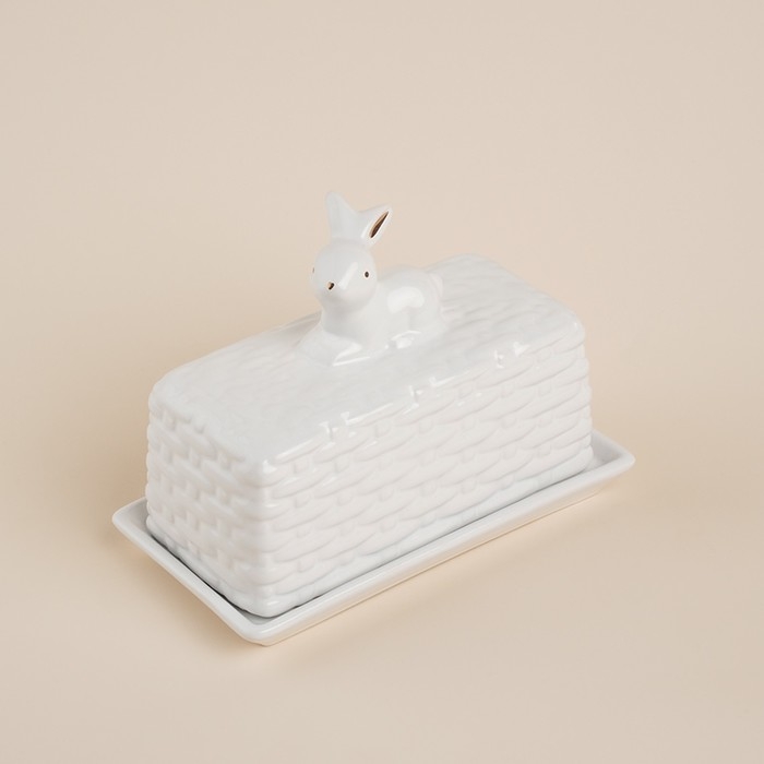 Маслёнка керамическая SL Home «Лесные кролики», 20,5×11×15,5 см, цвет белый