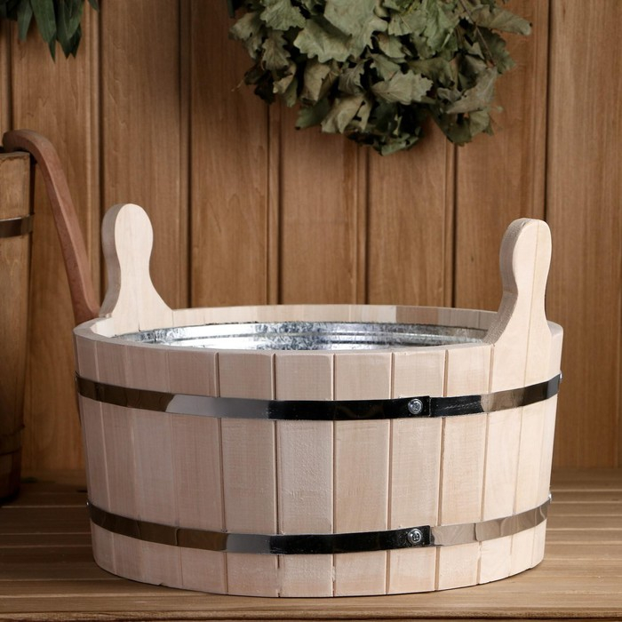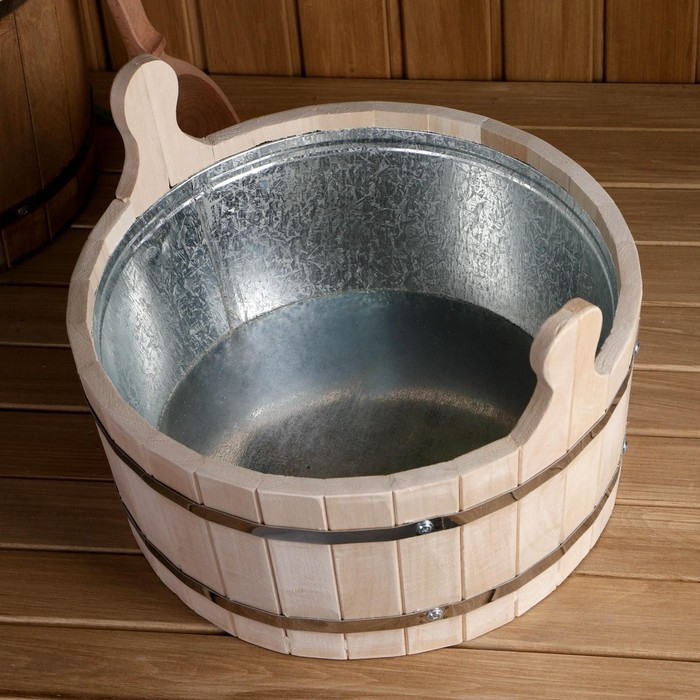 Шайка из липы, 13 л, круглая, оцинкованная вставка, "Добропаровъ"
