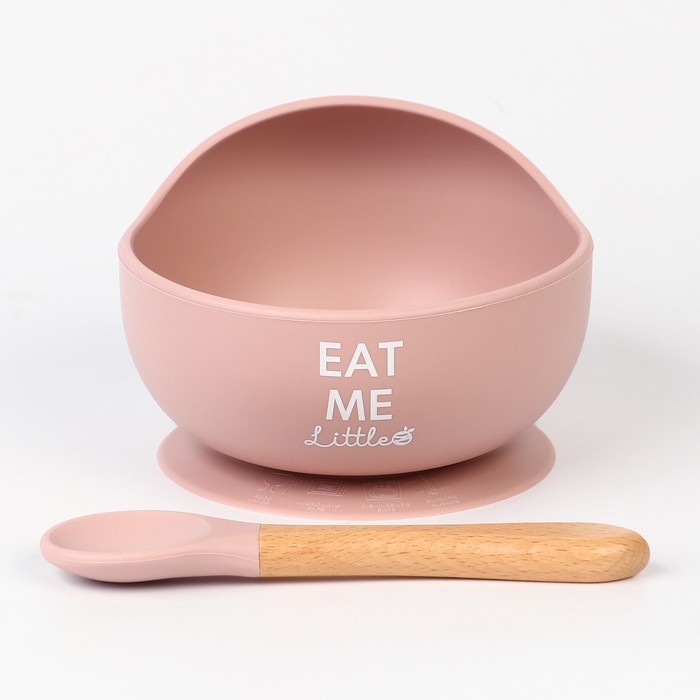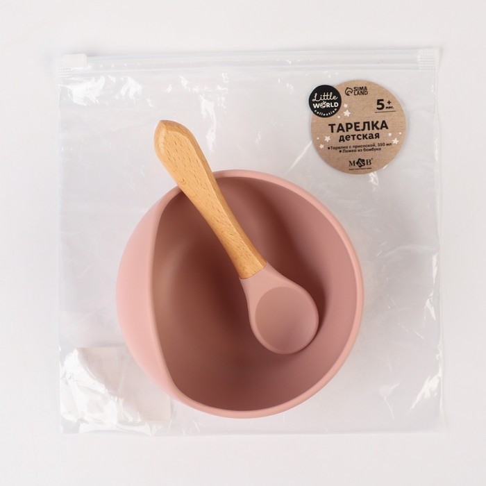 Тарелка детская на присоске, ложка, M&B, пыльная роза