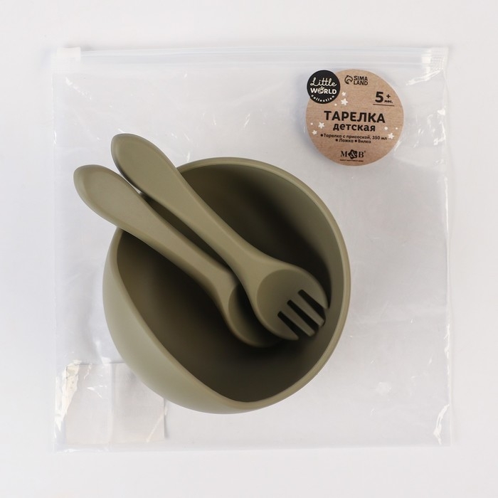 Тарелка детская на присоске и столовые приборы, M&B, зеленый
